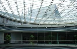die Überspannung der Dachfläche des Innenhofes wurde eine Seilnetz-Konstruktion