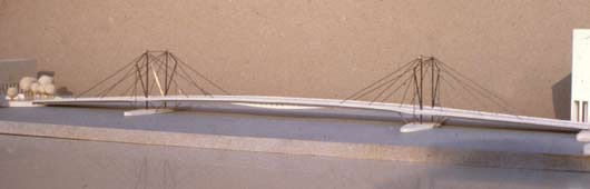 Brücke ist als Schrägseilbrücke über drei Felder mit
